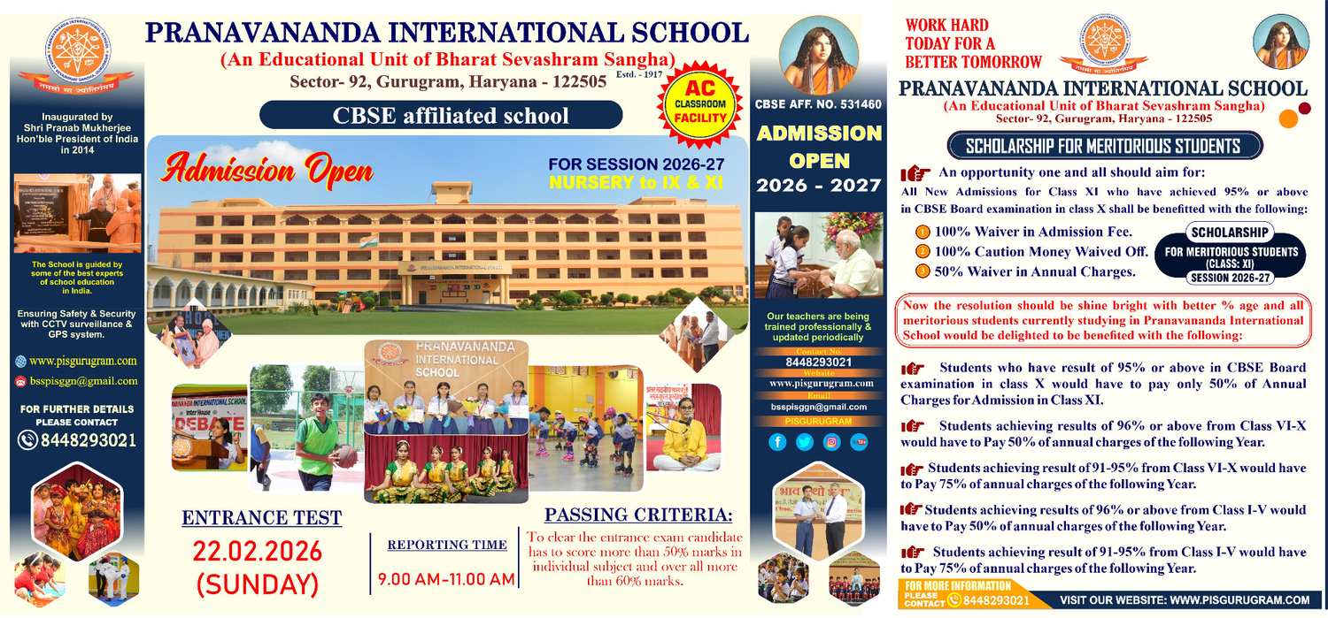 Pranavananda International School is an educational institution of Bharat Sevashram Sangha. Bharat Sevashram Sangha, the century old great philanthropic and a leading monastic organisation in India & abroad, initiated this service to the society aiming to impart present day modern education to the students blended with high moral values and strict discipline. It is a holistic approach towards all round development and progress of present generation– physical, mental, intellectual, moral, spiritual, social and emotional.
