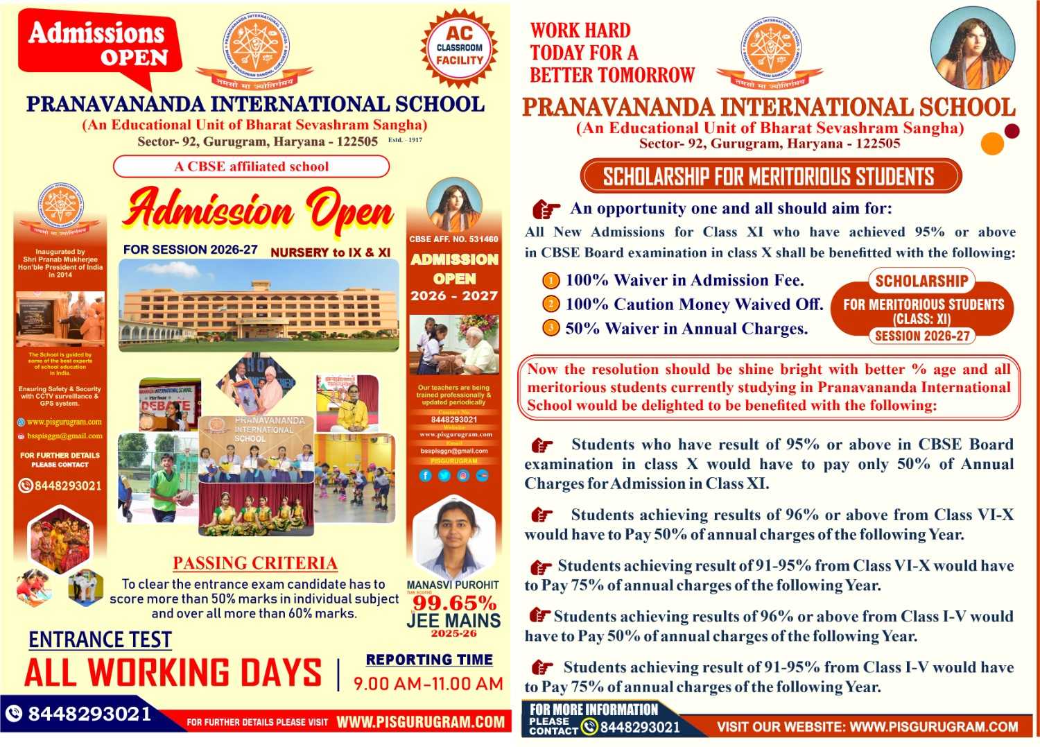 ADMISSION FOR THE SESSION 2025 - 2026 IS OPEN FOR THE CLASSES NURSERY TO CLASS - IX & CLASS - XI. Contact Nos. : 844 829 3021